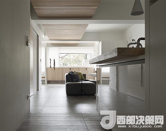長(zhǎng)長(zhǎng)的走道并不采取滿鋪的設(shè)計(jì),考慮采光的同時(shí)注重收納空間的規(guī)劃,有時(shí)不以鞋柜做隔擋空間會(huì)有更多的可能。