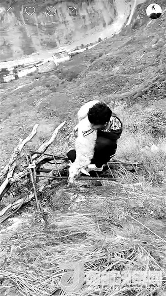 現(xiàn)在,村里24歲的彝族小伙兒拉博已經(jīng)成為首批網(wǎng)紅之一。2016年11月19日,垂直距離約800米、總共約1000級(jí)臺(tái)階的懸崖村鋼梯工程竣工。拉博就是鋼梯施工隊(duì)的一員,在山崖最陡峭的一段,他親手打下了固定的鋼釘。鋼梯完工后,拉博特意去“跑”了一遍,從山頂?shù)缴侥_僅耗時(shí)18分鐘,而這段路普通人可能需要一個(gè)半小時(shí)。從小放羊的拉博習(xí)慣了在山間奔跑跳躍,爬天梯、過吊橋、放牛羊這些生活日常,在5個(gè)月的時(shí)間里為他帶來了12.6萬的粉絲。