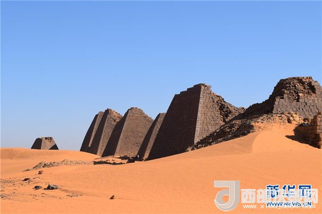 這是2017年12月30日在蘇丹首都喀土穆以北約240公里的撒哈拉沙漠中拍攝的蘇丹小金字塔。(記者馬意翀攝)