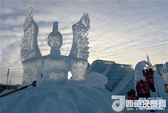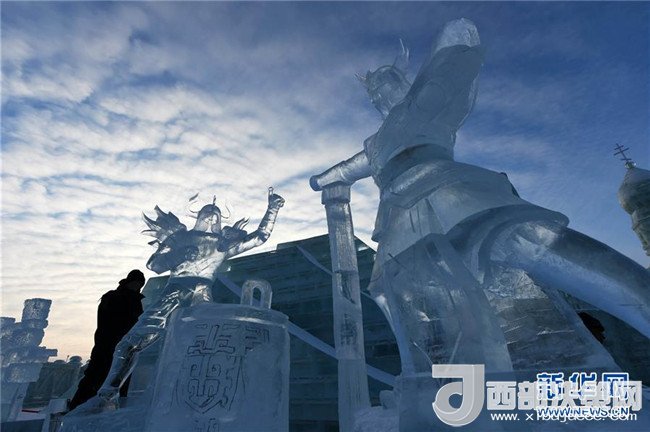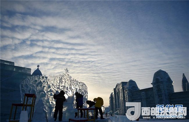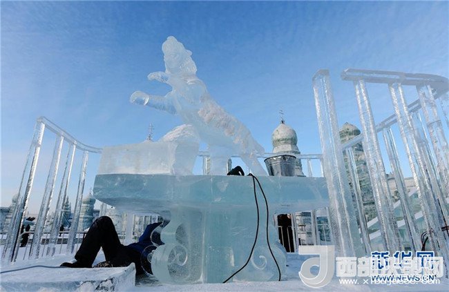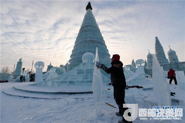 1月3日,在哈爾濱冰雪大世界園區(qū),冰雕選手在進行創(chuàng)作。當日,在哈爾濱冰雪大世界園區(qū)內舉行的國際組合冰冰雕比賽進入第四天。經(jīng)過來自世界各地的冰雕選手悉心雕琢,一塊塊冰出落成精美的藝術作品,仿佛晶瑩剔透的出“冰”芙蓉。(記者 王建威 攝)
