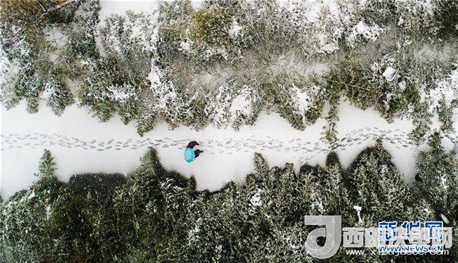 1月4日,合肥市翡翠湖公園內(nèi),兩名游客行走在雪中。當(dāng)日,安徽省合肥市迎來2018年首場降雪。(記者 郭晨 攝)
