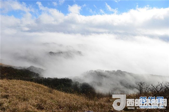 這是1月7日在貴州省黔東南苗嶺國(guó)家地質(zhì)公園拍攝的云海景觀。寒冬時(shí)節(jié),位于貴州省黔東南州的苗嶺國(guó)家地質(zhì)公園出現(xiàn)云海霧凇景觀,原始森林和草場(chǎng)在云海中若隱若現(xiàn),美若畫卷。(楊文斌攝)