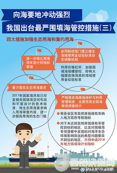 17日,國家海洋局舉行圍填海情況新聞發(fā)布會,國家海洋局副局長林山青宣布,結(jié)合圍填海督察整改工作,國家海洋局將采取“史上最嚴圍填海管控措施”,以期保護優(yōu)先、集約利用的用海理念牢固確立,使海域開發(fā)利用得到可持續(xù)發(fā)展。