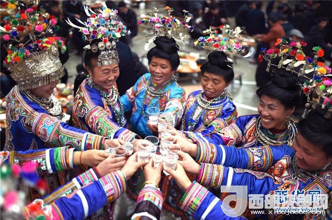 1月18日,在榕江縣仁里鄉(xiāng)仁吉侗寨,人們在“吃相思”活動上舉杯慶祝。