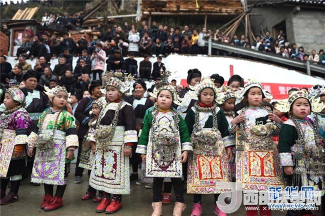 當(dāng)日是貴州省榕江縣仁里鄉(xiāng)仁吉侗寨大年初二,附近5個村寨的侗族、苗族、水族等少數(shù)民族群眾前來“吃相思”,共同歡慶侗年。“吃相思”是侗族地區(qū)村與村、寨與寨之間舉行的一種民間交往活動。記者戴天放攝