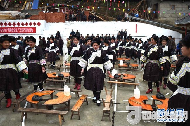 1月18日,在榕江縣仁里鄉(xiāng)仁吉侗寨,侗族婦女準(zhǔn)備參加“吃相思”活動。記者戴天放攝