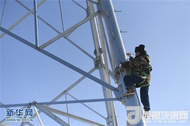 1月26日,國家電網(wǎng)長春供電公司輸電運檢室?guī)щ娮鳂I(yè)班班長楊忠武徒手爬上高壓線塔。新華社記者 張楠 攝