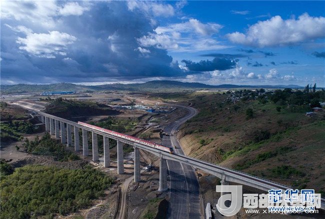 2017年5月12日,列車(chē)從肯尼亞蒙內(nèi)鐵路沿線的馬澤拉斯鐵路大橋上駛過(guò)。蒙內(nèi)鐵路連接肯尼亞首都內(nèi)羅畢和東非第一大港蒙巴薩,全長(zhǎng)約480公里,是一條采用中國(guó)標(biāo)準(zhǔn)、中國(guó)技術(shù)、中國(guó)裝備建造的現(xiàn)代化鐵路。記者陳誠(chéng)攝