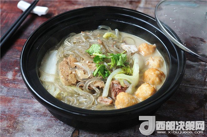 8.煮至丸子變大完全熟透,將排骨湯和排骨一起放入湯里