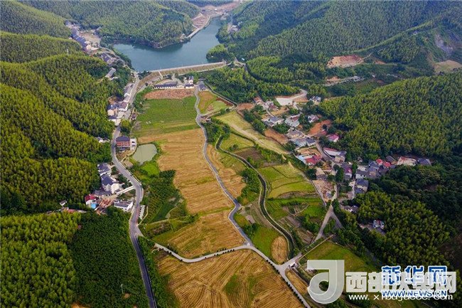 俯瞰浙江省安吉縣上墅鄉(xiāng)劉家塘村的美麗鄉(xiāng)村景色(2017年6月8日攝)。安吉縣大力開展美麗鄉(xiāng)村建設(shè),讓青山綠水成為當(dāng)?shù)?ldquo;金名片”。記者 張鋮 攝