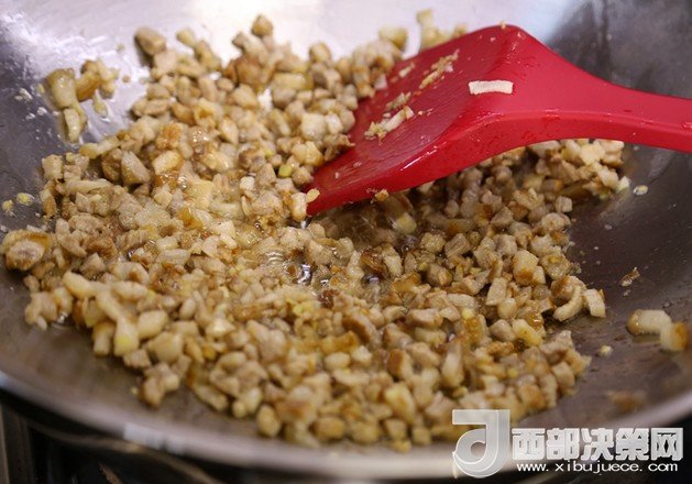 10.下入邊角料翻炒出油分。