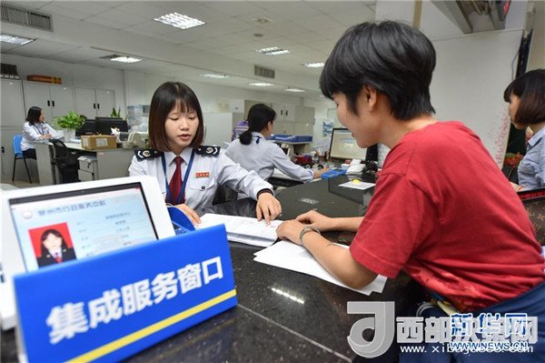 在福建福州地稅綜合辦稅中心辦稅服務(wù)廳,工作人員對納稅人材料進行預(yù)審,以節(jié)約其等候時間(2017年7月18日攝)。 新華社記者宋為偉攝