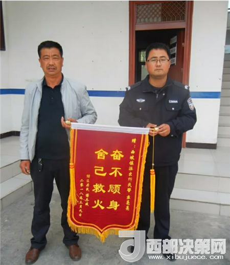 西部決策網(wǎng)——西部大開發(fā)訊(帥華鋒 通訊員 馬存福 韓燕玲)3月12日,甘肅兩當(dāng)縣西坡鎮(zhèn)居民傅先生專程前往西坡派出所,將一面書有“奮不顧身,舍己救火”的錦旗送到西坡派出所,以表達(dá)對(duì)民警袁亮亮的感激之情。