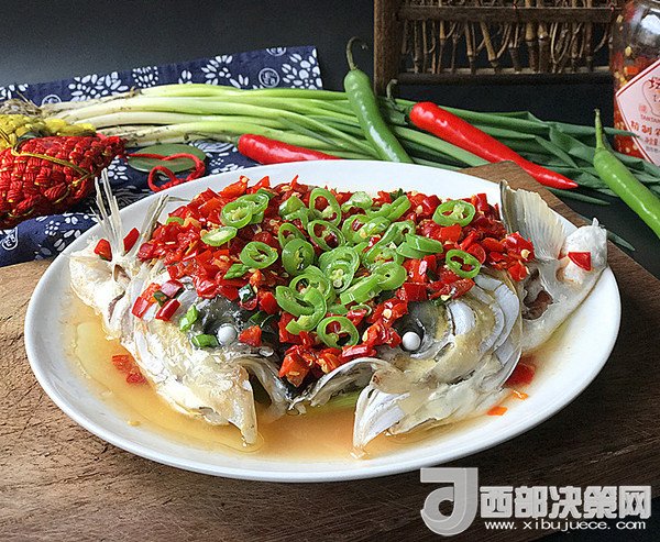 剁椒魚頭食材和做法也是極其簡單的,但要想魚肉不腥又鮮嫩多汁,它可是有技巧的喲;清洗、腌制、蒸魚這三步一步不能少,前二步簡單咱不說,話說第三步可是讓魚肉在最短時間內(nèi)成熟鮮嫩的秘籍所在;這樣在蒸制時產(chǎn)生的水蒸氣可以對流循環(huán),不僅可以縮短蒸制時間,還能讓魚身受熱均勻,因此蒸出來的魚肉才會更加鮮嫩美味,可與大飯店的蒸魚相媲美喲,與大飯店的蒸魚相媲美,學(xué)會這一招今后蒸任何魚肉都沒問題了。