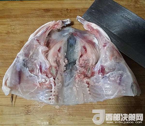 3.處理魚時注意將貼在魚肚子及魚頭里的黑膜全部撕掉并清洗干凈,要不吃起來會有很重的“魚腥味和土腥味”,然后瀝干水分后用刀將魚頭小心地劈開但不要劈斷、用蔥姜、料酒腌制半小時左右,可進(jìn)一步去腥增味