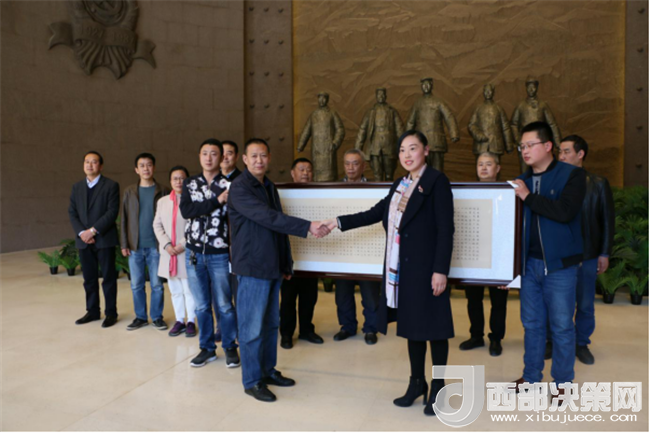 西部決策網(wǎng)——西部大開發(fā)訊(帥華鋒 通訊員 柴金霞 陳彥榮)“三月的南梁,大地處處蕩漾著春的漣漪.....”在這生機(jī)勃勃、春意盎然的美好時(shí)節(jié),中國書法家協(xié)會(huì)會(huì)員、首屆《世界華人運(yùn)動(dòng)大會(huì)書畫展》楷書評(píng)委、清心齋主人趙倉老師一行,帶著對(duì)革命老區(qū)的深情厚誼和對(duì)劉志丹、謝子長、習(xí)仲勛等革命先輩舍生忘死、救民出水火的崇敬之意來到革命圣地——南梁,向紀(jì)念館捐贈(zèng)書法作品《長恨歌·習(xí)仲勛》。本作品系趙倉老師艱辛創(chuàng)作的佳品力作,飽含了趙倉老師豐厚的文化內(nèi)涵,真實(shí)再現(xiàn)了習(xí)仲勛老人不畏艱難、矢志堅(jiān)守的人生壯麗詩篇。