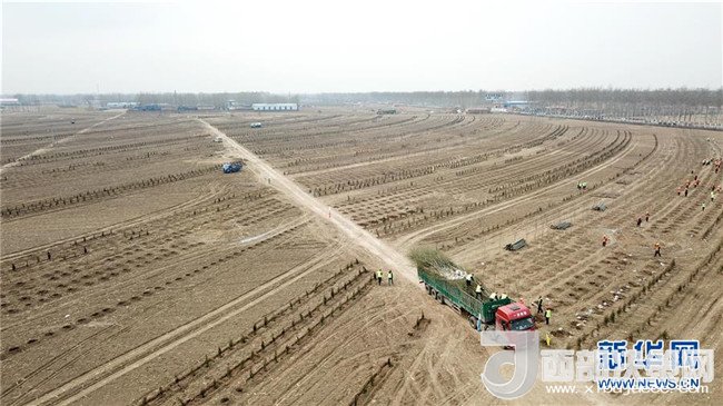 這是3月21日拍攝的河北雄安新區(qū)“千年秀林”工程施工現(xiàn)場(chǎng)(無人機(jī)拍攝)。新華社記者 楊世堯 攝