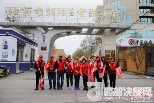 北京市朝陽(yáng)區(qū)實(shí)驗(yàn)小學(xué)雄安校區(qū),參加“家校警”護(hù)學(xué)隊(duì)的當(dāng)?shù)丶议L(zhǎng)志愿者在校門(mén)口。