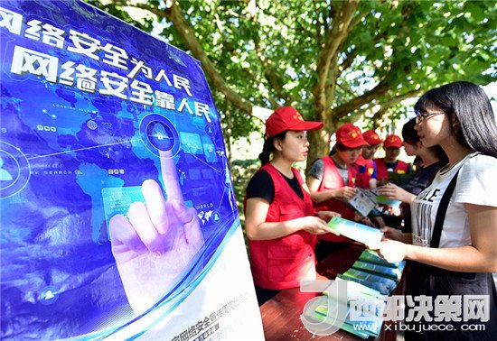 河北省廊坊市安次區(qū)網(wǎng)信辦工作人員和志愿者向學生們發(fā)放網(wǎng)絡安全宣傳折頁,倡導廣大師生提高網(wǎng)絡安全意識,共同維護網(wǎng)絡社會秩序(2017年9月19日攝)。新華社記者 王曉 攝