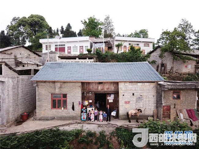 4月22日,吉雪和家人在老房子前留影(無人機(jī)拍攝)。
