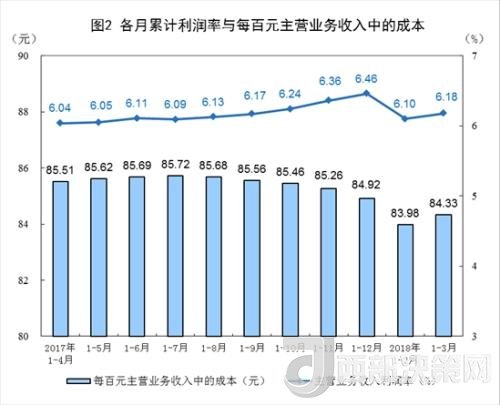 1-3月份,規(guī)模以上工業(yè)企業(yè)實現(xiàn)主營業(yè)務(wù)收入25.2萬億元,同比增長9.6%;發(fā)生主營業(yè)務(wù)成本21.2萬億元,增長9.4%;主營業(yè)務(wù)收入利潤率為6.18%,同比提高0.11個百分點。