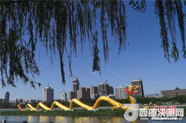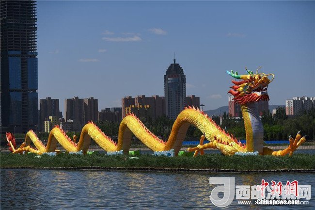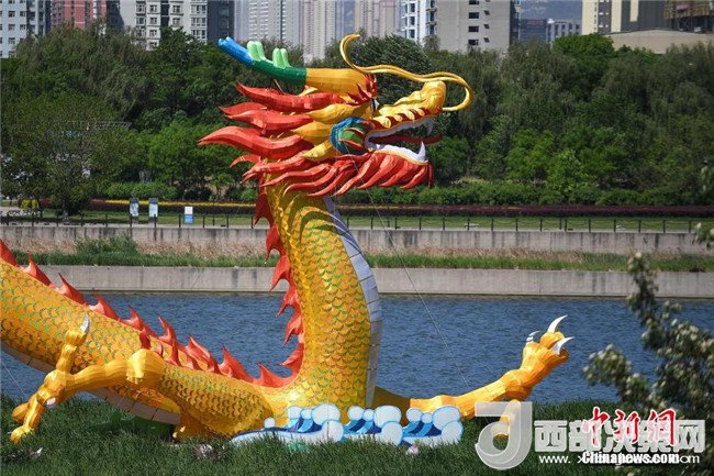 5月2日,山西太原汾河景區(qū)的中國(guó)巨龍裝飾一新。這條名為“中華第一巨龍”的景觀燈組長(zhǎng)126米,龍頭高16米,共計(jì)使用防雨綢布約3000平方米。中新社記者武俊杰攝