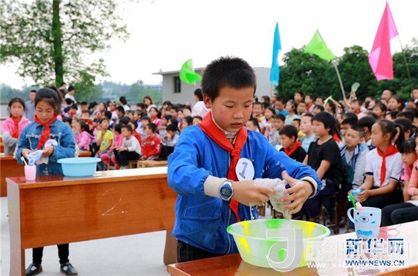 當日,九年一貫制的四川省華鎣市慶合初級中學舉行學生生活自理能力大賽。在該校就讀的小學生和初一、初二年級學生參加了穿衣服、洗漱、疊衣服、炒菜、包餃子等項目的比賽。該校把提高學生生活自理能力作為一項重要的教學工作,旨在引導孩子們養(yǎng)成良好的生活習慣。新華社發(fā)(周松林 攝)