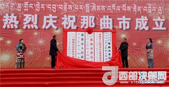 ?。啡丈衔纾鞑啬乔信e行撤地設(shè)市掛牌儀式。那曲市從而成為西藏第六個地級市,也是目前全國最年輕、海拔最高的地級市。