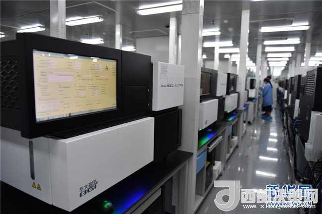2017年7月13日,工作人員在位于深圳的中國國家基因庫操作基因測序儀測序。新華社記者毛思倩攝
