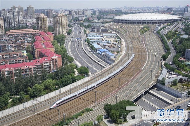 中國標(biāo)準(zhǔn)動(dòng)車組“復(fù)興號(hào)”G123次列車從北京南站首發(fā)(2017年6月26日攝)。新華社記者邢廣利攝