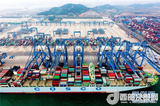 集裝箱船在青島港全自動(dòng)化集裝箱碼頭靠泊作業(yè)(2017年5月10日攝)。青島港全自動(dòng)化集裝箱碼頭是我國完全自主創(chuàng)新并設(shè)計(jì)建設(shè)的亞洲首個(gè)、全球領(lǐng)先的全自動(dòng)化碼頭。新華社記者朱崢攝