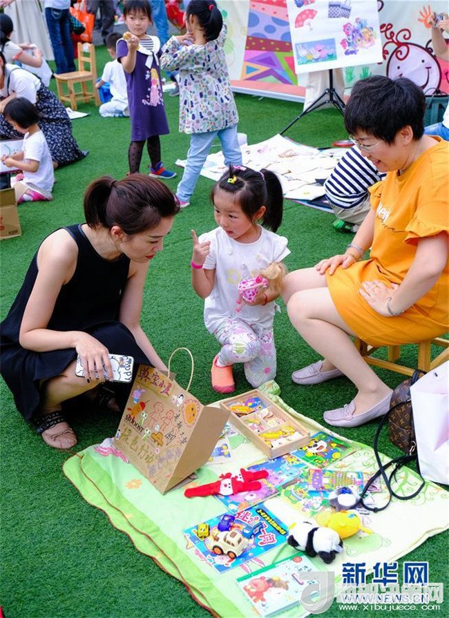 6月4日,孩子和家長們在校園“跳蚤市場”中買賣玩具和書籍。新華社記者 徐昱 攝