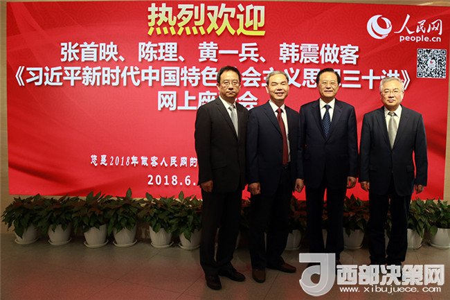 各位網(wǎng)友大家好,這里是《習(xí)近平新時代中國特色社會主義思想三十講》網(wǎng)上座談會現(xiàn)場。中共中央宣傳部組織編寫的《習(xí)近平新時代中國特色社會主義思想三十講》一書,近日由學(xué)習(xí)出版社出版,并在全國各地新華書店開始發(fā)行。為了幫助廣大干部群眾學(xué)好用好《習(xí)近平新時代中國特色社會主義思想三十講》這一重要輔助讀物,進一步興起學(xué)習(xí)貫徹習(xí)近平新時代中國特色社會主義思想新高潮。中共中央宣傳部理論局和人民網(wǎng)強國論壇聯(lián)合主辦了《習(xí)近平新時代中國特色社會主義思想三十講》系列網(wǎng)上座談會。今天我們是網(wǎng)上系列座談會的第一場,為大家請到四位老師和我們一起來分享。