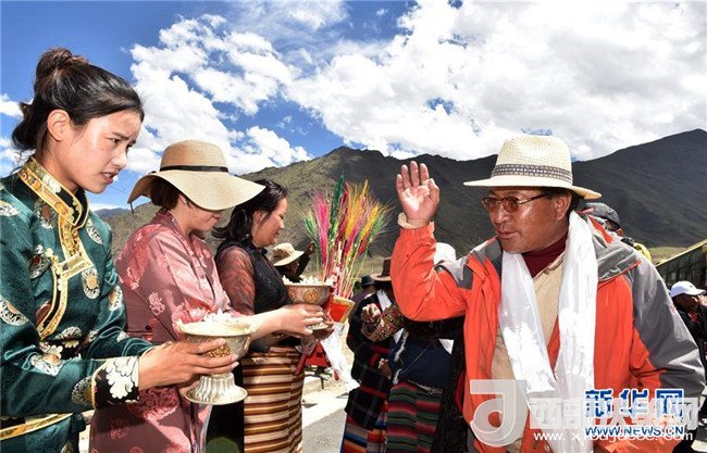 6月18日,嘎沖村群眾(左)向來(lái)自遠(yuǎn)方的新鄰居敬獻(xiàn)青稞酒。