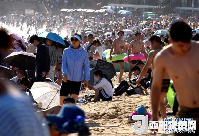 7月1日,人們在青島第一海水浴場海灘上游玩。 新華社記者 李紫恒 攝