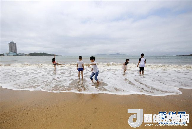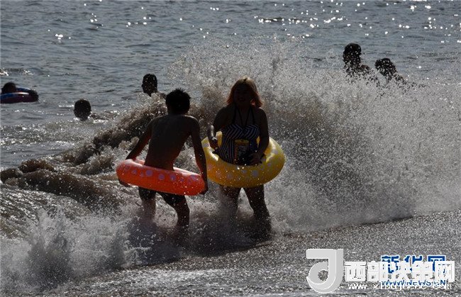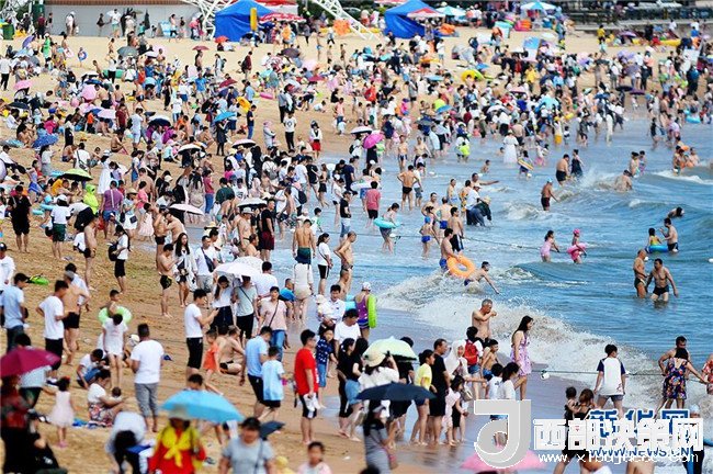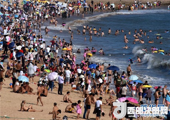 7月1日,游客在青島第一海水浴場戲水。 新華社記者 李紫恒 攝