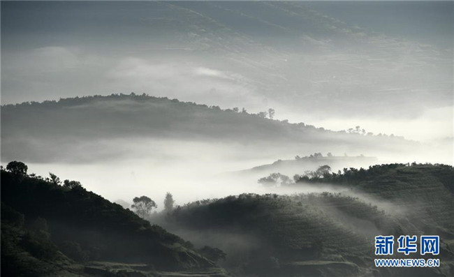 近日,寧夏固原市彭陽縣數十萬畝旱作梯田在曙光中迎來云海景觀,層疊的梯田間云霧繚繞,宛如仙境。據了解,彭陽縣自1983年建縣以來,始終堅持生態(tài)立縣的理念,積極推進植樹造林事業(yè),全縣林木保存面積由1983年的27萬畝,增長到目前的203.87萬畝,森林覆蓋率達到27.5%。記者王鵬攝