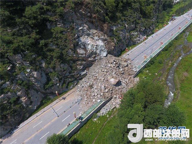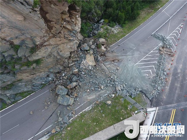 這是五臺山景區(qū)大甘河橋一側(cè)的山體崩塌現(xiàn)場(7月21日攝)。受降雨影響,山西五臺山景區(qū)于7月19日和20日發(fā)生兩起山體崩塌地質(zhì)災害,沒有造成人員傷亡和車輛損失。新華社發(fā)(楊晨光攝)