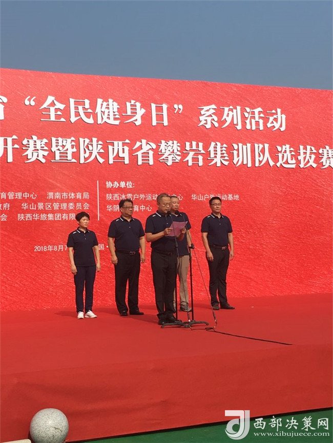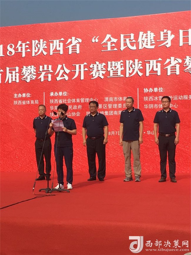 陜西省社會體育管理中心主任田凱、陜西省登山協(xié)會主席陳錚、渭南市體育局副局長王曉燕、陜西華山旅游集團(tuán)有限公司副總經(jīng)理趙江峰、華陰市體育中心主任潘飛出席本次活動開幕式。