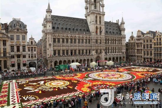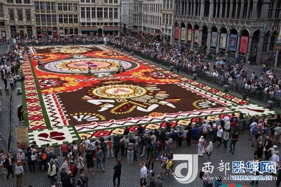8月16日,由50多萬(wàn)朵秋海棠鋪就的鮮花地毯亮相比利時(shí)布魯塞爾大廣場(chǎng)。