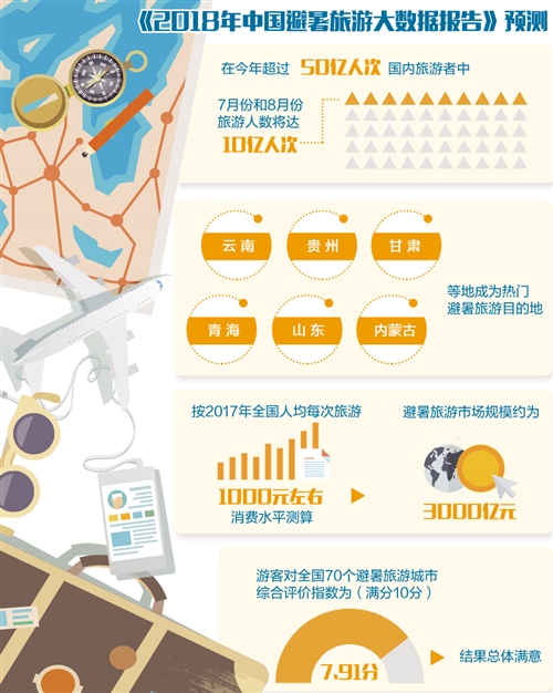 據(jù)中國(guó)旅游研究院等單位發(fā)布的《2018年中國(guó)避暑旅游大數(shù)據(jù)報(bào)告》(下稱(chēng)《報(bào)告》)預(yù)測(cè),在今年超過(guò)50億人次國(guó)內(nèi)旅游者中,7月份和8月份旅游人數(shù)將達(dá)10億人次,占全年游客數(shù)量的五分之一。其中,避暑旅游規(guī)模預(yù)計(jì)占一半,約5億人次?!秷?bào)告》稱(chēng),這一數(shù)字將使中國(guó)成為全球最大的避暑旅游市場(chǎng)。