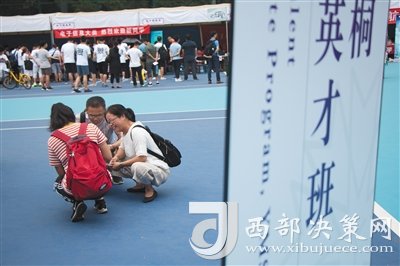 昨日,新生及其家長在丘成桐數(shù)學(xué)英才班報(bào)到處附近休息。