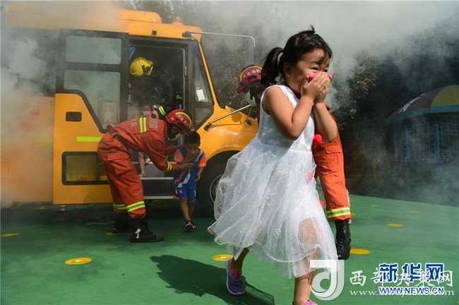 新學(xué)期開學(xué)在即,河北省滄州市新華區(qū)在幼兒園、中小學(xué)舉行消防應(yīng)急逃生演練,重點(diǎn)針對(duì)校車安全、突發(fā)火情逃生等環(huán)節(jié)進(jìn)行模擬演練,提高學(xué)生的防范意識(shí)與應(yīng)急避險(xiǎn)能力。 新華社發(fā)(傅新春 攝)
