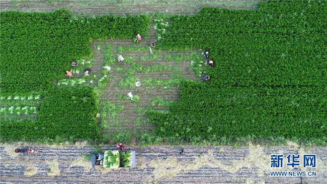 農(nóng)民在寧夏固原市西吉縣興隆鎮(zhèn)收割芹菜(8月9日無人機航拍)。地處西北內(nèi)陸的寧夏,既有高山大漠的雄渾,又有“塞上江南”的溫婉,自然造化之美自古入詩入畫。自治區(qū)成立60年里,尤其是黨的十八大以來,這片熱土上的人民用勤勞和智慧,發(fā)展特色農(nóng)業(yè)、建設美麗鄉(xiāng)村、樹立文明鄉(xiāng)風,繪就一幅全新、壯美的鄉(xiāng)村振興新畫卷。新華社記者王鵬攝
