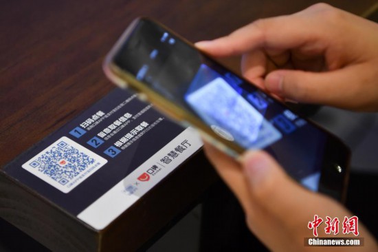 9月5日,顧客通過掃描店家二維碼實現(xiàn)點餐、取餐、結(jié)賬。當(dāng)日,云南首家智慧餐廳在昆明開業(yè),消費者到店前,便可以使用口碑App或支付寶提前點好美食,預(yù)約時間然后自取,也可以到店后直接用手機(jī)點單,等收到取餐碼后,從取餐柜中拿出菜品,自助完成就餐全流程。中新社記者 劉冉陽 攝
