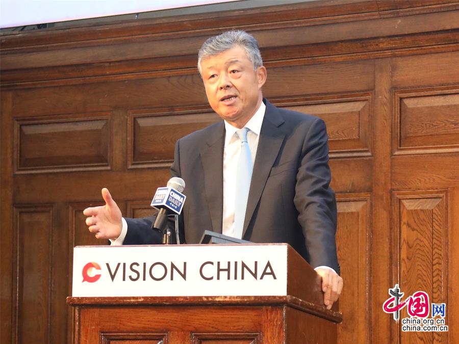 9月13日,中國日報(bào)社以“改革開放再出發(fā):中國與世界新愿景”為主題在英國倫敦喬治街1號(hào)舉辦第五期“新時(shí)代大講堂”。中國駐英國大使劉曉明致辭。(主辦方供圖)