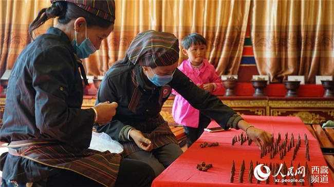本波日山腳下、薩迦寺旁,一個大院兒里飄出藏香獨特的香味,一進大院,有的在提取制作藏香的原材料、有的在手工制作藏香模型、有的在包裝藏香,這里的藏香大多線上銷售,遠銷北京、上海、杭州等地,一年銷售額達到2000多萬元。