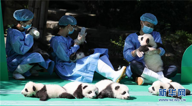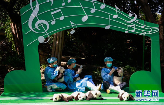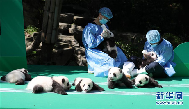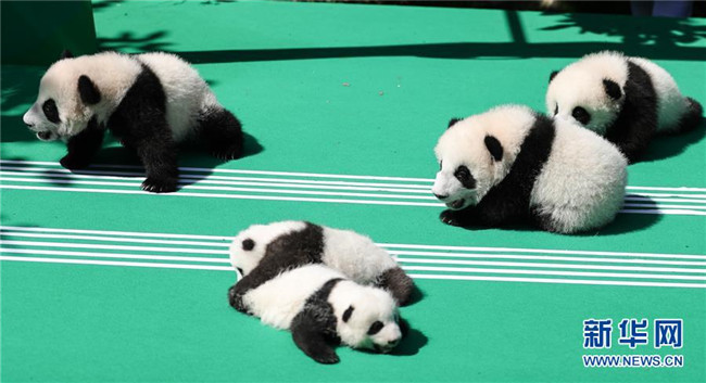 這是9月28日在成都大熊貓繁育研究基地月亮產(chǎn)房拍攝的大熊貓寶寶。 當日,成都大熊貓繁育研究基地為2018年出生的12只新生大熊貓寶寶舉行了一場別開生面的亮相活動。
