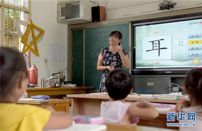 在安徽省黃山市黃山區(qū)烏石鎮(zhèn)清溪中心小學(xué)茶兒垅村教學(xué)點(diǎn)內(nèi),蔣秀蘭老師在給孩子們上語(yǔ)文課(9月7日攝)。今年53歲蔣秀蘭老師從1983年參加工作開(kāi)始,一直獨(dú)自堅(jiān)守在“一人一校”的單班教學(xué)點(diǎn),最多的時(shí)候獨(dú)自一人帶過(guò)26名學(xué)生,目前她負(fù)責(zé)兩個(gè)年級(jí)5個(gè)孩子7門(mén)課的教學(xué)。 新華社記者 王正忠 攝