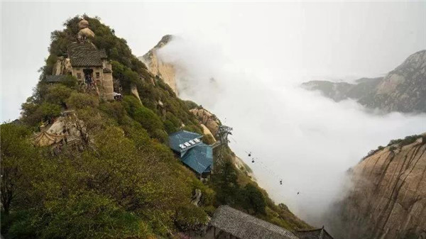 賞紅葉——華山的紅葉是噴薄的,那是一種一瀉千里,從山頂直鋪下山谷,又從山谷延綿更遠(yuǎn)的群山,像瀑布一般,而葉愈遠(yuǎn)處愈紅,紅似火焰耀眼,眼前的則紅黃交錯(cuò),讓人目不暇接。